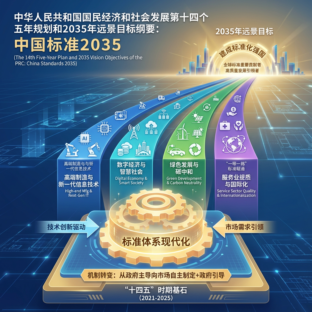 请通过一张信息图,清晰地说明中华人民共和国国民经济和社会发展第十四个五年规划和2035年远景目标纲要中有关“中国标准2035”的部分
